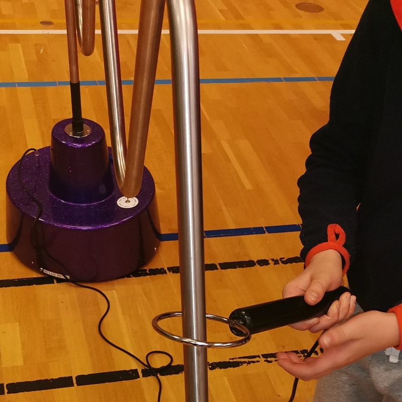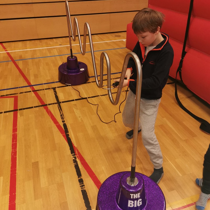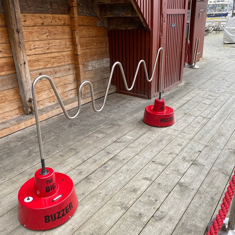 En gigatisk buzzer. Her gjelder det å føre ringen hele veien uten å komme borti.