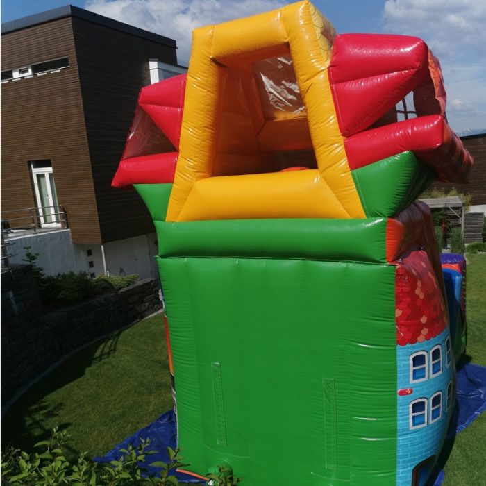 Sklie med et fantastisk design. Hele sklien er formet som et «gotteri» hus.
