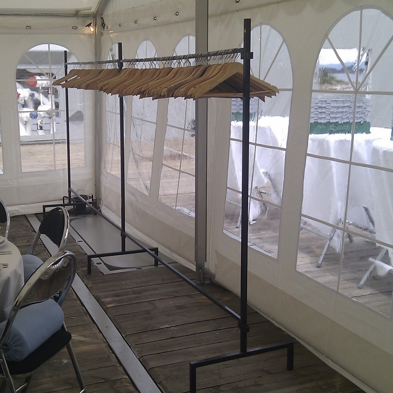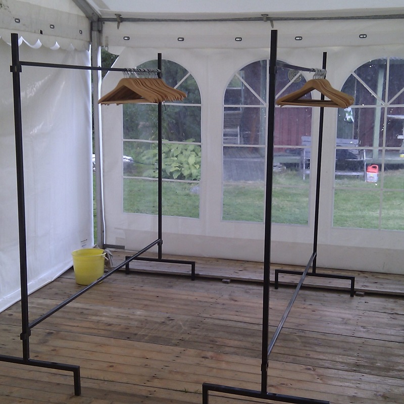 Vi leier ut robuste garderobestativ. Hvert stativ gir plass for jakker til 40 gjester. Garderobestativene er sammenleggbare og svært enkel å montere. Vi leier også ut kleshengere og selger garderobelapper.